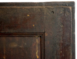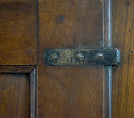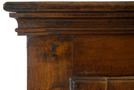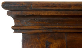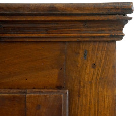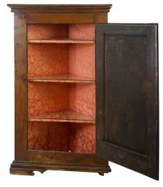 Angoliera in noce, XVIII secolo, cappello modanato, fronte dritto ad un'anta pannellata, piede a mensola, cm h 152x64x62, (difetti, restauri)