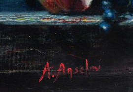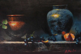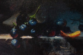 Natura morta, olio su tela, cm 29,5x40,5, entro cornice.