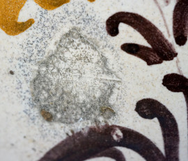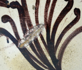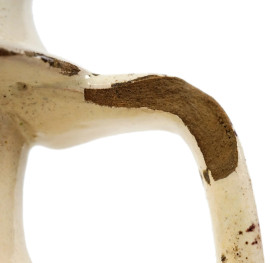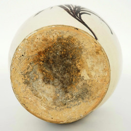 Antica fiasca in ceramica policroma, corpo ovoidale a due anse, decori raffiguranti fiori stilizzati, cm h 27, (difetti)