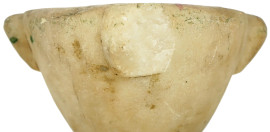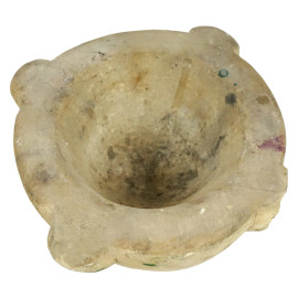 Antico mortaio in marmo bianco, cm h 11x18x18, (difetti)