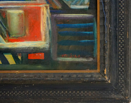 Astratto, olio su tela, cm 50x70, firmato, entro cornice.