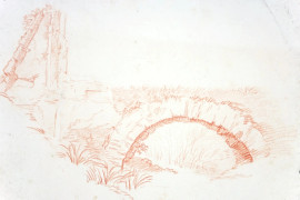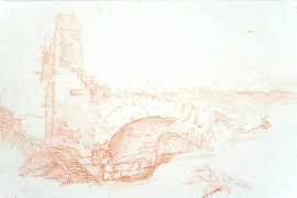 Attr.a Jean Honoré Fragonard (1732-1806), lotto di due studi di paesaggi, sanguigna su carta, cm 20,5x32,5