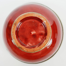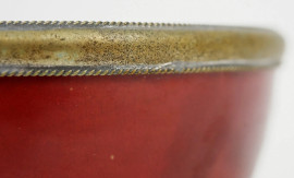 Bowl in ceramica smaltata rossa, profilo in metallo dorato, cm 6,5x13, XX secolo, (lievi difetti).