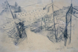 Campi di Meriania, matita su carta, cm 26x40, XX secolo, entro cornice.
