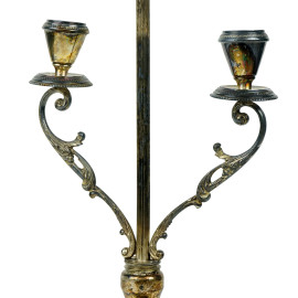 Candelabro a due luci in argento, cm h 69,5, XX secolo, peso gr. 510