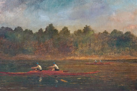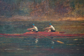 Canottieri, olio su tela, cm 30,5x52,5, firmato, entro cornice.