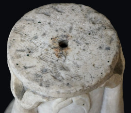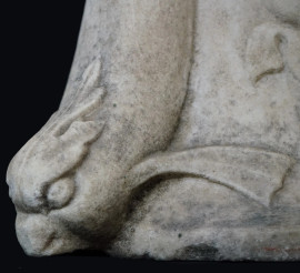 Capitello in marmo scolpito con tre delfini a rilievo, fine XIX-inizi XX secolo, cm h 26, (difetti).