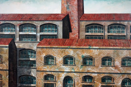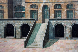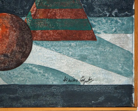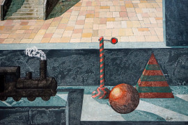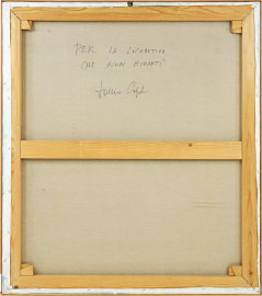 Per la locomotiva che non ripartì, olio su tela, cm 95x85, firmato fronte e retro