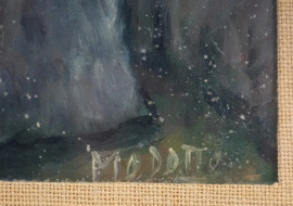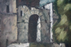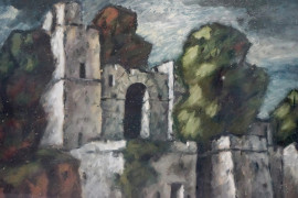 Castello, olio su cartone, cm 78x54,5, firmato, entro cornice.
