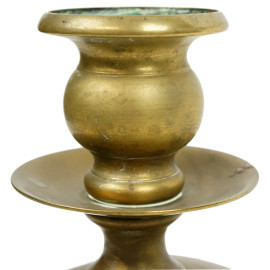 Coppia di candelieri in ottone, cm h 22, XX secolo, (segni del tempo).