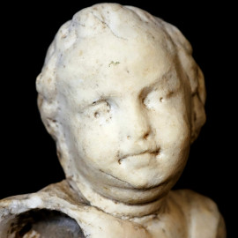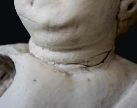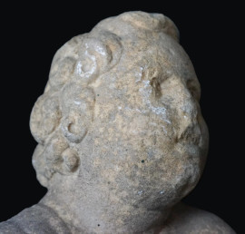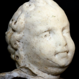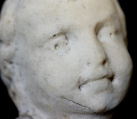 Coppia di putti in marmo scolpito, cm h 46, XVII secolo, (mancanze e difetti).