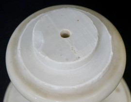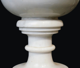 Coppia di vasi a cratere in marmo bianco, cm h 51, XX secolo, (difetti, scheggiature).