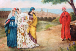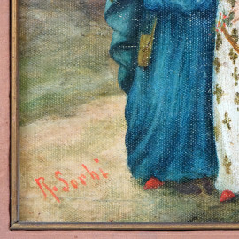 Dante e Beatrice, olio su tela, cm 22x34, firmato, entro cornice Impero.