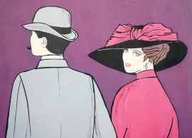 Coppia a passeggio, tempera su carta, cm 50x35, entro cornice.