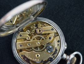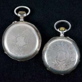 Due orologi da tasca in argento, fine XIX-inizi XX secolo, quadranti a numeri romani, misure max cm h 6,5x5,5, (meccanismi da revisionare)