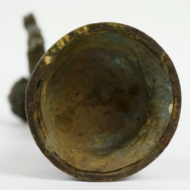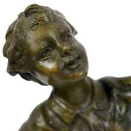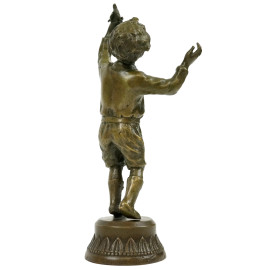 Fanciullo con fringuello, scultura in bronzo, cm h 21,5, XX secolo