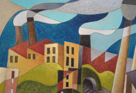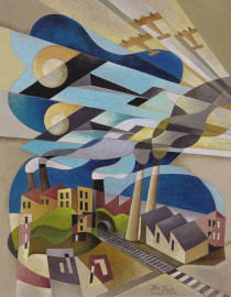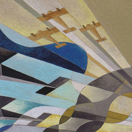 Aeropittura, olio su tela, cm 40,5x30,5, entro cornice.