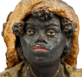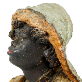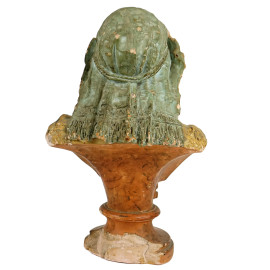 Figura femminile orientale, busto in terracotta dipinta, cm h 38, XIX secolo, (difetti).