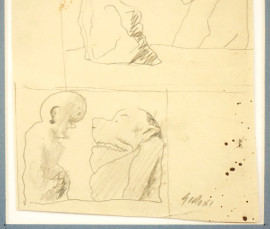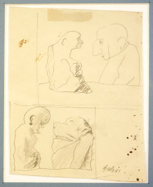 Figure, disegno a matita su carta, cm 12,5x10, firmato Sironi, entro cornice, (macchie)