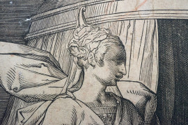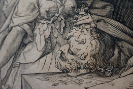 Giuditta con la testa di Oloferne, antica incisione, cm 21,5x717, (difetti).