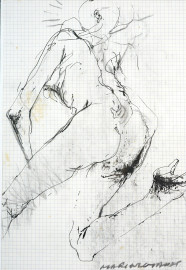Nudo di donna, china su carta, cm 29x20, entro cornice, (difetti).