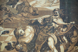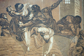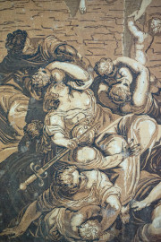 Jackson John Baptist (1701-1780 ca), La strage degli innocenti, stampa su carta, cm 39,5x53,5, tratta da un soggetto del Tintoretto, (difetti)