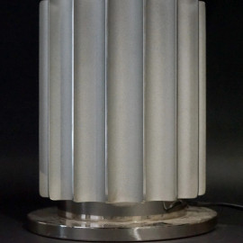 Lampada da tavolo Taccia, Achille e Pier Giacomo Castiglioni per Flos, corpo in alluminio, cappello in vetro soffiato, cm h 56x49,5 (lievi difetti)
