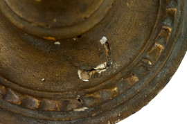 Lampada in legno intagliato e dorato, base circolare, cm h 50, XIX secolo, (difetti).