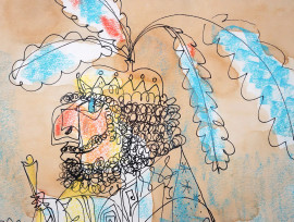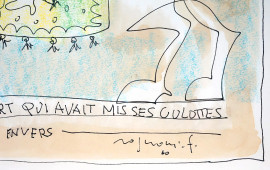 Le bon Roi Dagobert qui on avait mis ses culottes a l'invers, tecnica mista su carta, cm 70x50, firmato e datato, entro cornice.