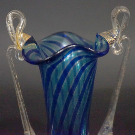 Lotto composto da due boccette porta profumo e due vasetti in vetro di Murano, uno recante etichetta adesiva Effe Due Murano sotto la base, alt.max cm 20, XX secolo, (un tappo mancante).