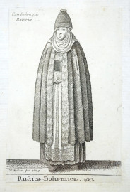 Lotto di due antiche incisioni raffiguranti "Pilato esamina Gesù se era Figliuol di Dio" e "Rustica Bohemica"da W. Hollar 1643, misure max cm 14,5x10, entro cornici, (difetti).