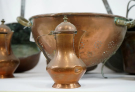 Lotto di quattordici utensili in rame, XX secolo, (difetti)