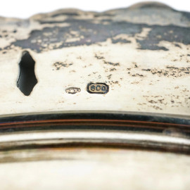 Lotto di sei oggetti in argento, particolari incisi e sbalzati, misure max cm 7x20x17, XX secolo, peso totale gr. 590