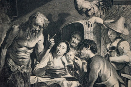 Lotto di tre antiche incisioni raffiguranti Il satiro ed il contadino, S.Filippo Neri e Scena di pesca, misure max cm 38,5x39, (difetti e macchie).