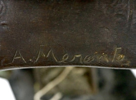 Maternità, scultura in bronzo, cm h 42, firma incussa al retro A. Merente - Fonderia Lieto, base in marmo, (difetti)