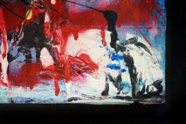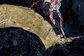 Il mistero nero e oro, tecnica mista su tela, cm 60x100, entro teca in plexiglass.
