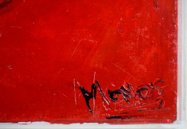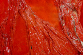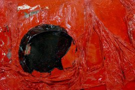 Inferno rosso, dipinto polimaterico su tela, cm 40x50