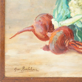 Natura morta - Ortaggi, olio su cartone, cm 33x48, firmato, entro cornice.
