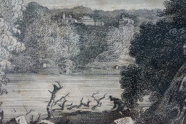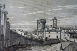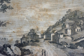 Otto piccole stampine raffiguranti scorci e paesaggi della campagna romana, cm 8x12,5, circa, XX secolo, (macchie sulla carta).