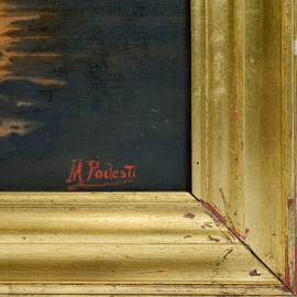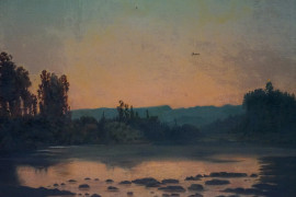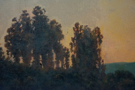 Paesaggio al tramonto, olio su tela, cm 45x53, firmato, entro cornice, (difetti)