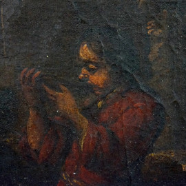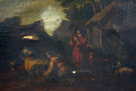 Pittore del XVII-XVIII secolo, Scena pastorale, olio su tela, cm 35,5x52, entro cornice