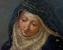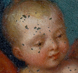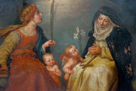 Pittore del XVIII secolo, Sante Caterina da Siena e Caterina da Alessandria, olio su rame, cm 24,4x30,6, (cadute di colore soarse)