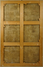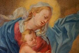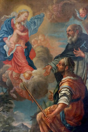 Pittore del XVIII secolo, Vergine col Bambino e Sant'Antonio Abate, olio su tela, cm 191x122, (difetti).
