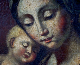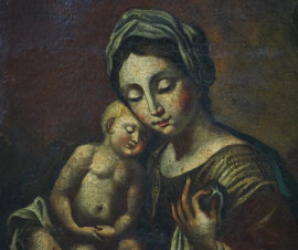 Pittore della fine del XVIII secolo, Madonna col Bambino, olio su tela, cm 68x49, entro cornice, (difetti sulla tela).