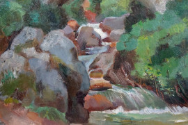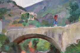 Campagna toscana con ponte, olio su tela, cm 55,5x46, entro cornice