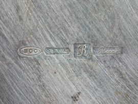 Portafiori in argento e vetro, Ricci, Alessandria, seconda metà XX secolo, cm h 15x20, peso netto gr. 320, (difetti)