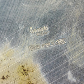 Portavaso in argento Lovi, Vicenza, XX secolo, decori incisi e sbalzati a pampini e grappoli d'uva, cm 14,5x21,5, peso gr.630