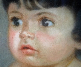 Ritratto di bambina, pastello su carta, cm 30x27, firmato, entro cornice.