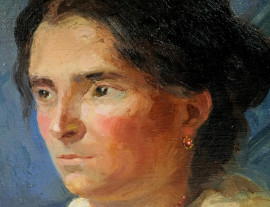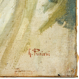 Ritratto di donna con collana di corallo, olio su tela, cm 47,5x39, firmato G. Piccioni, (lievi difetti).