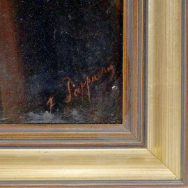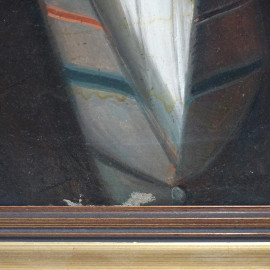 Ritratto di gentiluomo con papillon, olio su tela, cm 52,5x42, firmato, entro cornice, (cadute di colore).